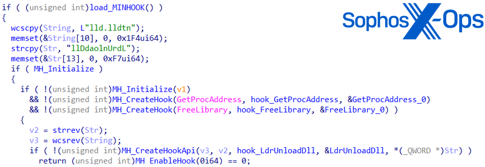 Another commonality is the use of the Minhook DLL; however, in this case it is not loaded by the malicious loader, but by the payload file.