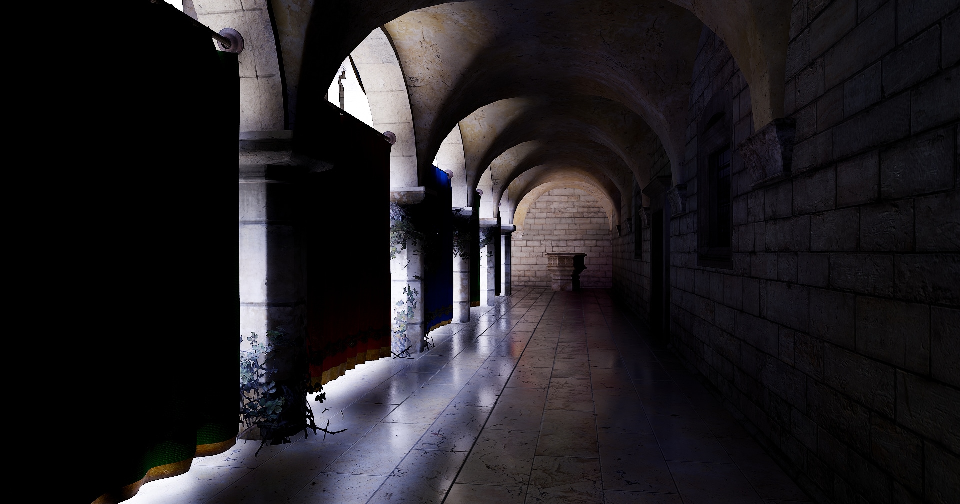 An area where this has most effect is in reflections where the reflector isn’t in view. Below is an image comparison of the Sponza scene with reflections isolated.