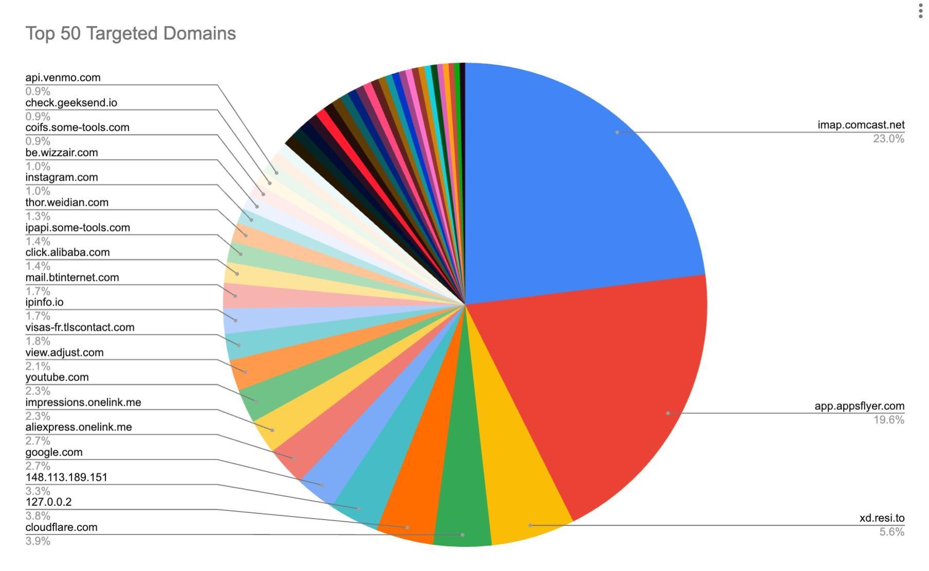 The top 50 domain names sought out by users of IPIDEA’s residential proxy service, according to Synthient.