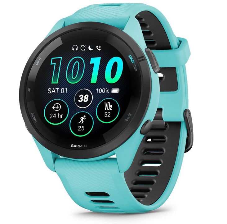 Garmin Forerunner 265 Running Smartwatch, Colorful AMOLED Display, Training Metrics and Recovery Insights, Aqua and Black